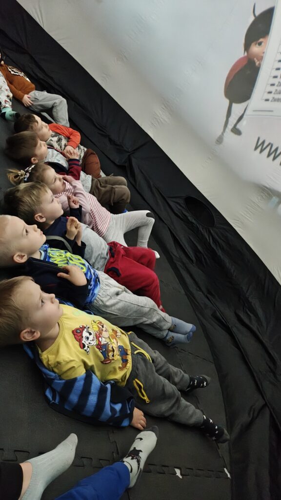 W piątek 27.03.2026 w naszym przedszkolu odbyło się niezwykłe wydarzenie – kino sferyczne!