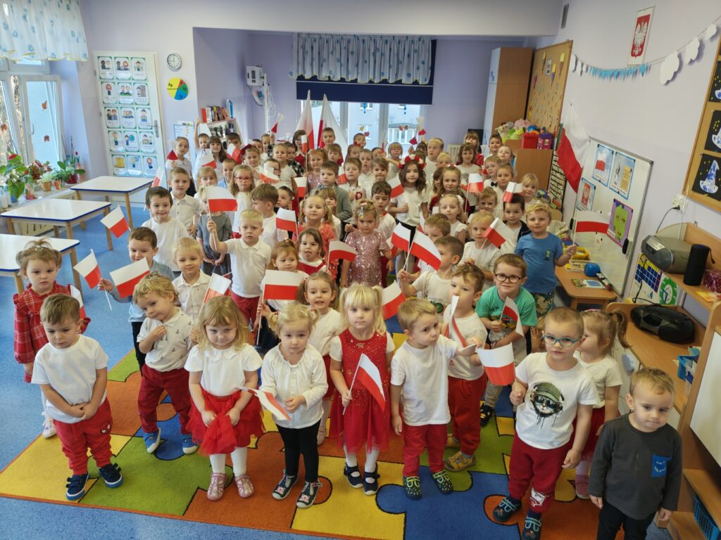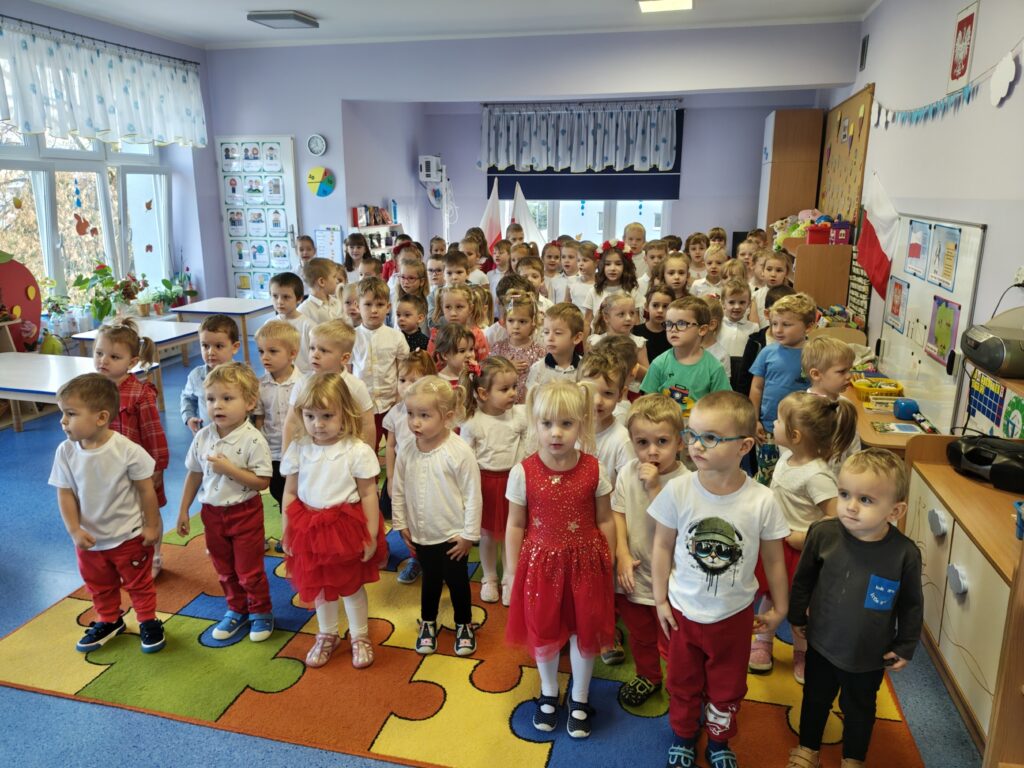 Jest to akcja ogłoszona przez Ministerstwo Edukacji i Nauki, polegająca na odśpiewaniu hymnu państwowego w dzień poprzedzający Narodowe Święto Niepodległości. Dokładnie o symbolicznej godzinie 11:11 wszystkie przedszkolaki wraz z wychowawcami uroczyście odśpiewali hymn narodowy „Mazurka Dąbrowskiego”. Dzieci pamiętały tego dnia o uroczystym ubiorze i prawidłowej postawie podczas śpiewu. Udział w akcji jest jednym z wielu działań podejmowanym w naszym przedszkolu, mającym na celu kształtowanie wśród wychowanków postawy patriotycznej oraz poczucia świadomości narodowej.